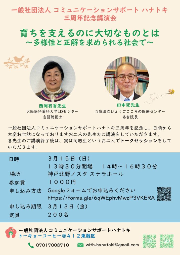 一般社団法人コミュニケーションサポートハナトキは今年四月に三周年を迎えます。